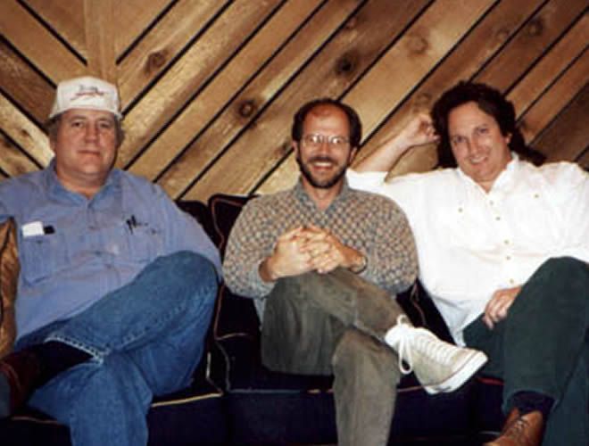 Bil VornDick, Buddy, and Jerry Douglas at the studio during recording of Minstrel of the Lord.
