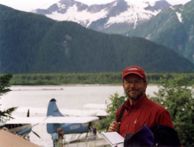 North to Alaska! 2001 Alaskan cruise with Chuck Swindoll. We're boarding a plane for a salmon feast at a fly-in only lodge.