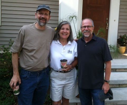 3 Caballeros - together again! l-r: Jeff Taylor, Tricia Walker, BG House Concert in Michigan, July 2012.