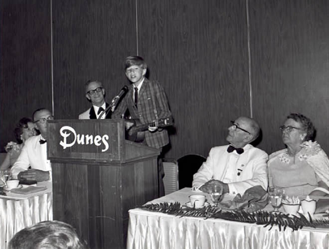 Viva Las Vegas ! Me reading the crowd at the 1964 National Plumbers Convention (Dad got me the gig!) Ma Kettle looks a little nervous.